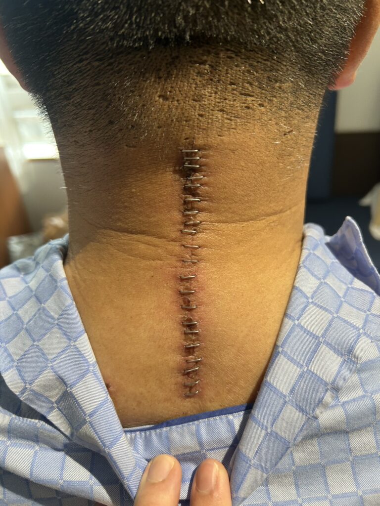頚椎症性脊髄症の手術 2026年1月13日 最終更新日時 : 2026年1月13日 高森 一政 年末、シンフォニー病院にて手術を受けました。 院長先生をはじめとするスタッフの皆様には、大変お世話になりました。 とても快適な病室 傷口(抜鉤前)